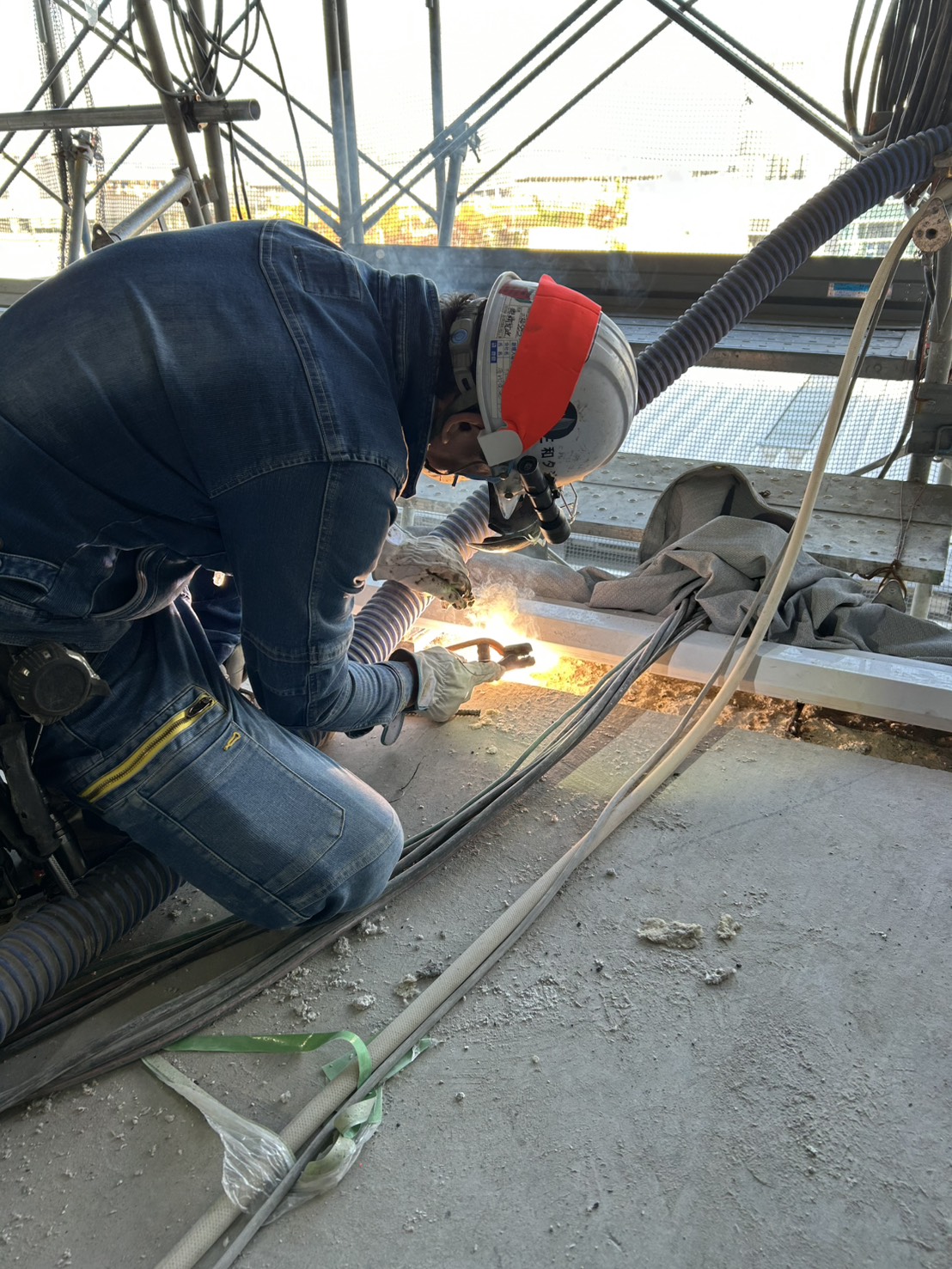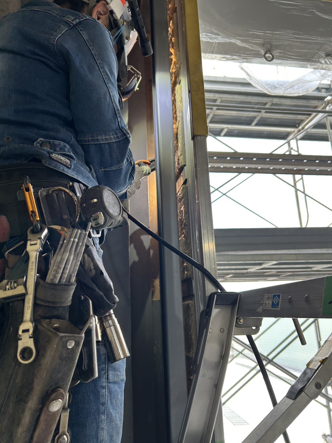 取り付け後のサッシを確実に固定するため、必要箇所にて溶接作業を行います。